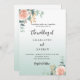Un dégradé blanc et vert chic. Décoré de fleurs roses dorées et roses rousses, de fleurs roses et de feuilles d'eucalyptus vert aquarellés, de sprigs, de verdure et de faux sprigs dorés. Personnalisez et ajoutez vos noms et détails. Arrière : fond blanc et vert dégradé.