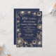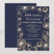 Fleurs scintillantes dorées sur fond bleu de minuit Invitation pour une fête d'anniversaire de mariage de 65 ans
