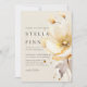 Invitation Fleurs élégantes Blanc Jaune Or QR Code Mariage