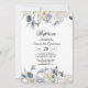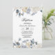 Invitation Fleurs élégantes bleues et blanches d'hiver