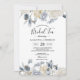 Invitation Fleurs élégantes bleues et blanches d'hiver