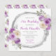 Belle invitation à la fête d'anniversaire avec un cadre en faux parties scintillant violet et argent avec des arrangements floraux. Parfait pour une fête d'anniversaire. Les mots peuvent être changés en fonction de vos propres détails ou exigences