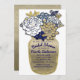 Cartes d'invitation Fleurs en pot Mason Rustique Bleu Or Floral Mariage