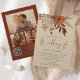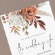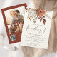 Fleurs en Terracotta Rustique 3 Photos Code QR Mariage. Des fleurs élégantes, des baies et des herbes dans des couleurs automnales marron terracotta et crème, coulent du haut. Le Mariage de est dans un style d'écriture manuscrite. Personnalisez facilement le reste du texte avec vos propres détails. Remplacez les trois exemples d'images au dos par les vôtres. Ajoutez votre code QR à votre site web de mariage au dos, cela permet à vos invités de répondre et de voir tous les détails sans avoir besoin de cartes de réponse et de détails séparées. Votre code QR sera généré automatiquement pour mettre à jour le code exemple dans le design, lorsque vous changerez simplement l'URL exemple dans le modèle avec l'URL de votre propre site web de mariage.