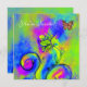 Invitation FLEURS ET BUTTERFLIES BLANCHES bleu violet vert