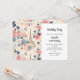 Une invitation à l'anniversaire avec un charmant motif à thème français. Jolies fleurs et une tour Eiffel et papillons. Les couleurs comprennent le rose, le bleu, la pêche et la crème.