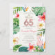 Feuilles tropicaux de palmiers, fleurs et flamants roses. Cette invitation est facilement customisée pour votre événement en ajoutant simplement vos détails.