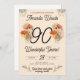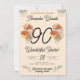 Honore neuf décennies de moments chéris avec cet élégant design floral ! Un "90" est entouré de fleurs douces d'orange et de rose, de feuilles délicats dans des tons pastel doux, ce qui en fait une invitation parfaite pour une fête de 90ème anniversaire. Ajoutez votre nom et les détails de l'événement pour créer une conservation significative. C’est une belle façon de rassembler des êtres chers pour une journée de joie et de réflexion !