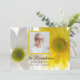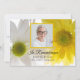 Invités Invitations de se souvenir de votre être aimé un an après leur passage avec la joyeuse Fleurs de marguerite Jaune et Blanc Invitation anniversaire de la mort. Cette jolie fête fleurie sur mesure de l'invitation hommage commémoratif de la vie présente une photo florale peinte numériquement gros plan de marguerites jaunes et blanches avec un arrière - plan blanc. Personnalisez-le avec le nom, les dates de naissance et de décès et la photo du défunt. Disponible sous forme d'invitation imprimée à l'envoi et/ou en téléchargement numérique pour un partage numériquement en ligne facile.