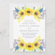 Nos faire-part de mariage Flowerfields entourent vos détails du jour de mariage avec des amas de tournesols jaunes aquarelles, des bourgeons bleus et violets, et du feuillage vert. Un choix élégant pour les mariages d'été ou d'automne dans un cadre rustique extérieur ou champêtre.