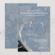 Un mélange doux de fleurs bleues et blanches pâles, un fond à motif répétitif avec un graphique de fleur argentée abstraite pour une superbe conception de Save the Date pour les années à venir.