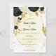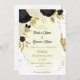 Fleurs noires et blanches romantiques avec faire-part de mariage botanique feuille d'or Les détails de la parties scintillant sont simulés. Il convient aussi bien aux mariages qu'aux parties d'engagement.