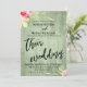 Invitation Fleurs peintes Bois vert Décontracté Script Mariag