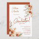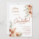 Célébrez votre étape académique avec style avec notre invitation de remise de diplôme en terre cuite bohème, dotée de magnifiques arrangements floraux automnaux et d'accents délicats de pampas. Les tons chauds de l'orange brûlée et de la terre cuite évoquent une élégance rustique, créant l'ambiance parfaite pour votre célébration de remise de diplôme. Chaque élément de cette invitation a été soigneusement conçu pour refléter la beauté de la saison et l'importance de votre réussite.