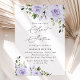 Invitations amis et famille dans le style et donner le ton pour votre journée spéciale avec cette charmante invitation d'anniversaire. Le design présente des fleurs d'aquarelle violette et de la verdure sur l'arrière - plan blanc.