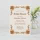 Ces invitations branchées à la douche nuptiale présentent un cadre de fleurs rétro élégantes et de feuilles aux couleurs neutres vintages comme le marron, le beige, l'or, le vert d'olive et la crème d'ivoire avec texte de style rétro.