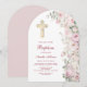 Invitation Fleurs Rose Pâle Arche Baptême