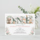 Cette élégante invitation de 1er anniversaire présente des fleurs douces rose pastel, des feuilles d'eucalyptus vert sauge, d'adorables animaux de la forêt et des lettres modernes. Parfait pour le premier anniversaire d'une fille !