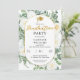 Votre diplômé préféré sort diplômé cette année ? Alors ce design de remise de diplôme floral élégant et chic avec des roses blanches et un feuillage vert sauge luxuriant pourrait être juste ce qu'il vous faut pour planifier la fête parfaite pour votre diplômé ! Caractéristiques : un cadre ovale oblong en doré et un texte en écriture dorée élégante.