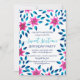 Invitation Fleurs Roses Bleues Feuilles Paint Acrylique Douce