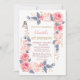 Invitation Fleurs roses Bouton rayé Anniversaire