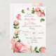 Invitation fleurs roses chaudes vert feuille papillons mariag