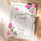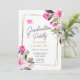 Invitation Fleurs roses chic vert or script remise de diplôme