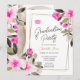 Démarquez-vous parmi les diplômés avec cette invitation de remise de diplômes élégante et moderne, avec des fleurs roses peintes et des feuilles vertes, encadrées d'un bord géométrique doré en style terrarium. Ajoutez votre photo en forme d'arche à l'arrière.