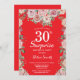 Invitation Fleurs roses de pivoines surprises 30e anniversaire rouge pour femmes. Fleur florale aquarelle. Fleurs élégantes de rose et de pivoine roses. Anniversaire adulte. Fond rouge. 13e 15e 16e 18e 20e 21e 30e 40e 50e 60e 70e 80e 90e 100e, tous âges. Pour une personnalisation supplémentaire, veuillez cliquer sur le bouton "Personnaliser" et utiliser notre outil de conception pour modifier ce modèle.