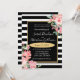 Cette faire-part de mariage étonnante et étonnante présente des rayures noires et blanches audacieuses avec une garniture or et des fleurs roses. Les roses roses apparaissent vraiment et chantent magnifiquement sur cette magnifique faire-part de mariage.