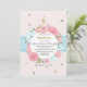 Une charmante invitation florale avec des fleurs roses et bleues sur un fond rose et un bandeau bleu. La croix dorée peut être déplacée à l'endroit souhaité, agrandie ou réduite (+-), ou supprimée, ce qui rend ce design polyvalent. <br/><br/>La carte est facile à personnaliser avec votre texte, police, couleur de police, options de forme de papier et choix parmi six types de papier.<br/><br/>Vous ne trouvez pas exactement ce que vous cherchez ? Tous nos produits peuvent être conçus sur mesure pour répondre à vos besoins sans frais supplémentaires.<br/><br/>Il suffit de nous contacter à askpixieprints@aol.com.<br/><br/>Produits coordonnés disponibles : Demandez-nous !