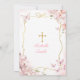 Fleurs roses ÉDITABLES Fille Papillon Première Sainte Communion Invitation Élégant Blush Rose Cadre Or Croix Christening Primera Comunión Invitación