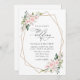 Invitez vos amis et votre famille avec style et définissez le ton de votre journée spéciale avec cette charmante invitation de mariage. Le design présente des fleurs aquarelles rose blush, de la verdure et un cadre doré sur fond blanc.