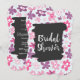 Une invitation fantaisiste à une baby shower avec un motif floral mignon. Composé de fleurs roses et violettes de forme irrégulière dans un style rétro groovy des années soixante. De petits cœurs bleus délavés parsèment le fond sur un fond bleu pâle. Un cadre dessiné à la main noir superposé au centre avec les mots Baby Shower, écrits dans une police tendance blanche. Personnalisez avec les détails de votre fête au dos.
