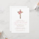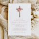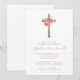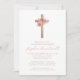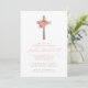Invitation Fleurs Roses Or Fille Baptême Croix