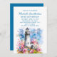 Charmant invitation à la fête du 100e anniversaire avec une aquarelle représentant une scène nautique d'un joli phare entouré de fleurs roses. Contactez-moi pour obtenir de l'aide sur la personnalisation ou pour demander la correspondance ou la coordination des produits Zazzle