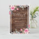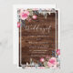 Invitation Fleurs roses rousses Mariage en bois rustique