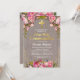 Invitation pour la première communion des filles avec un fond en bois rustique, paillettes dorées dispersées, un beau décor floral aquarelle rose, un titre en lettrage doré, une croix religieuse et un modèle de première communion facile à personnaliser.