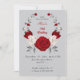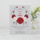 fleurs romantiques rouges et blanches couronne botanique sur une invitation d'anniversaire arrière - plan gris