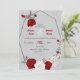 magnifiques fleurs rouges et blanches et faire-part de mariage géométrique feuille gris