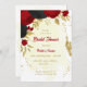 Fleurs romantiques rouges et noires avec or feuille botanique nuptiale invitation Les détails de la parties scintillant sont simulés. Il est adapté à la fois pour les invitations à la douche nuptiale et à la douche bébé.