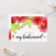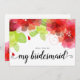 Fleurs rouges éthérées et écriture cursive style calligraphie manuscrite mariage printanier fleuri "Serez-vous ma demoiselle d'honneur?" carte. Un joli design qui présente des fleurs rouges et roses avec des feuilles verts.