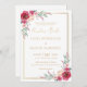 Invitation Fleurs Rouges Feuilles Vertes Cadre Doré Notre Mar