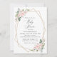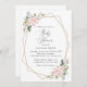 Invitations amis et famille dans le style et donner le ton pour votre journée spéciale avec cette charmante invitation baby shower. Le design présente des fleurs d'aquarelle rose vif, de la verdure et un cadre doré sur un arrière - plan blanc.