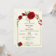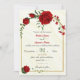 fleurs rouges romantiques et élégants feuilles verts sur cadre or faire-part de mariage