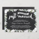 Cette élégante et moderne invitation pour le 40e anniversaire de mariage présente une belle calligraphie au pinceau, de magnifiques fleurs bleues et blanches, une typographie qui indique "Juste mariés (il y a quarante ans !)", et un fond rustique de tableau noir.