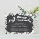 Cette invitation élégante et moderne pour les 60 ans de mariage présente une belle calligraphie au pinceau, de magnifiques fleurs bleues et blanches, une typographie qui indique "Mariés (il y a soixante ans !)", et un fond rustique en ardoise.