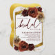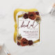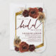 Cette invitation à la douche nuptiale présente des fleurs d'automne écossaises à l'huile rustique peintes en bordeaux et toniques, sur la verdure et l'herbe de pampas avec un cadre élégant de feuillage doré et arrière - plan.