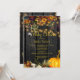 Belles fleurs automnales rouillées et bordeaux foncé et bordures citrouilles avec cordes de lumières scintillantes dorées sur un arrière - plan de grange brun foncé faisant une élégante invitation à la fête baby shower avec une écriture manuscrite manuscrite script de typographie or. ++++++++++ Facile à personnaliser avec vos détails ! Convient pour automne traditionnel automne rustique | pays | ferme | jardin extérieur garçon ou fille ou sexe révèlent baby shower.