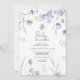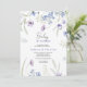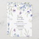 Cette invitation tendance Baby in bloom présente des fleurs sauvages aquarelles bleu clair et violet, des feuilles de verdure. Profitez-en !